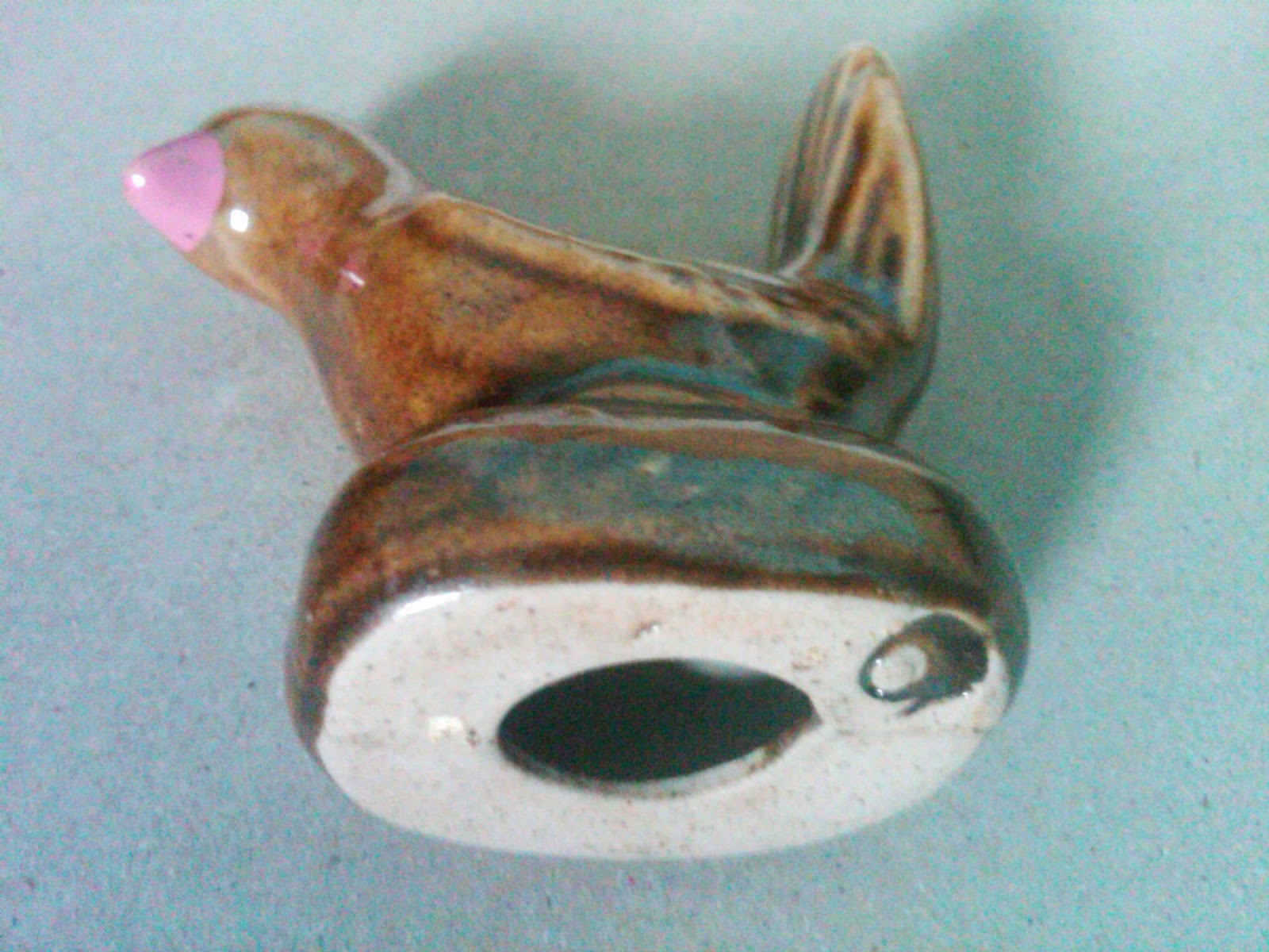 Ini niatnya mau jadi burung atau ayam, kami masih bingung... yang jelas unggas. Kami memilikinya sejak era 90'an dengan kondisi masih layak pajang alias kinclong tanpa cip atau retak. Bawahnya memang ada lubang tapi sudah dari sananya begitu. Tinggi keramik ini + 6,5 cm dengan lebar alasnya + 4,3 cm.