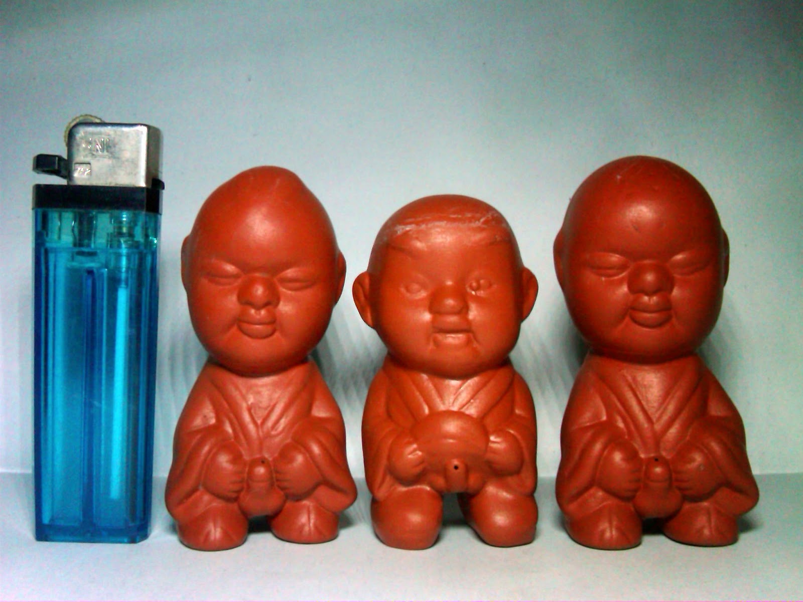 berbahan terakota dari Jepang, dengan bentuk 3 bocah mau pipis. Bentuk bocah